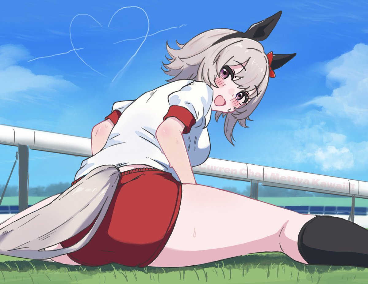 準備中カレンチャンのお尻とふとももに気を取られてラチに書いてあるCurren Chan Mettya Kawaii!!に気づかなかった