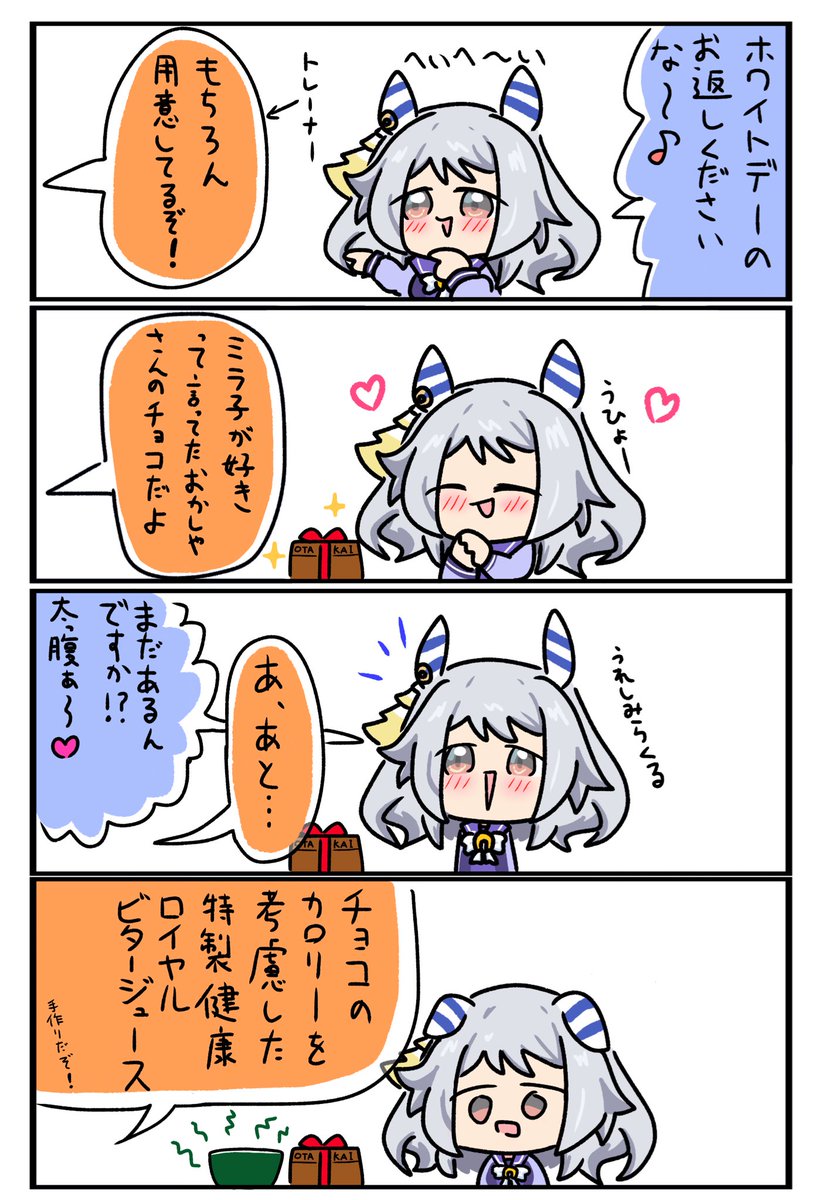ミラ子…今日はチョコ好きなだけ食え…