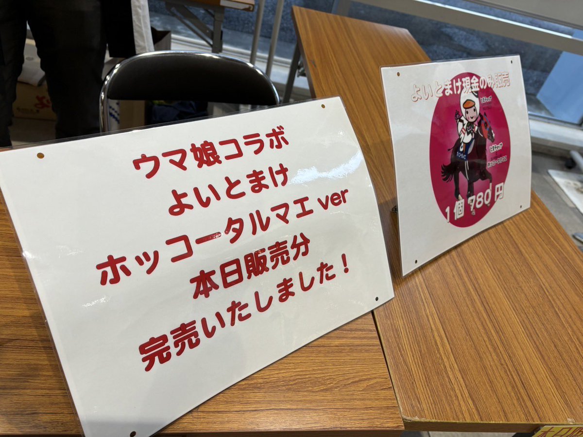 本日は場内で開門後から北海道銘菓「ウマ娘 プリティダービー よいとまけ ホッコータルマエver.」の販売がありましたが、既に完売いたしました🐴