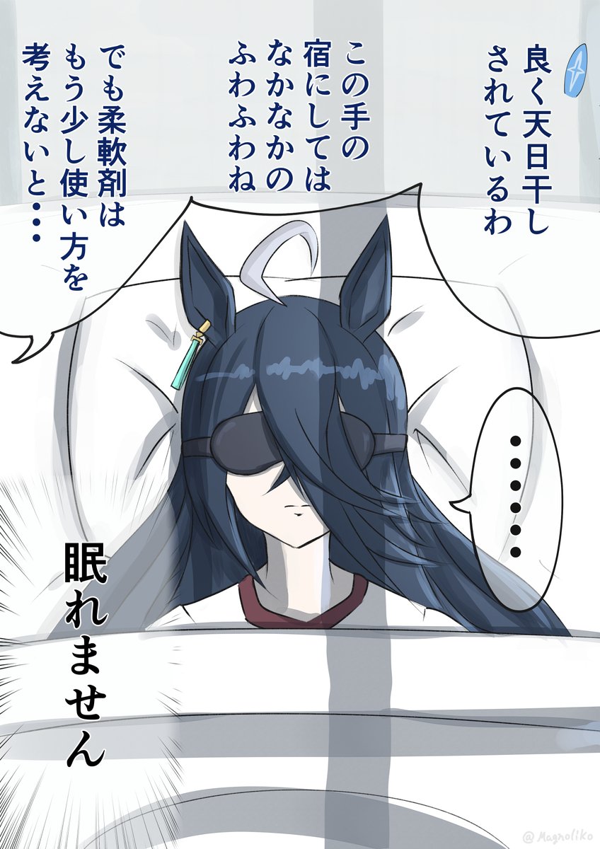???(眠れない?そう、貴女はフワフワに妥協を許さないのね。ならこれを使って、もしものために持ってきた布団乾燥機よ、これを使えば快適な睡眠が約束されるわ、さあ遠慮せずに使って。)