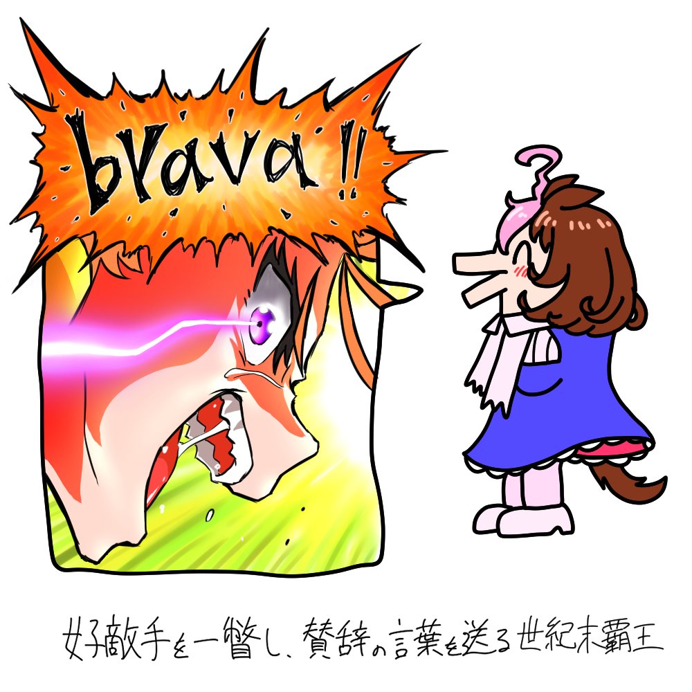 ウマ娘が始まった当初はスペちゃんをマークして盛大に自爆した印象しかなかったピエロが、アプリ→RTTTを通じてついにラスボス『世紀末覇王』として君臨したジャパンカップのシーン
