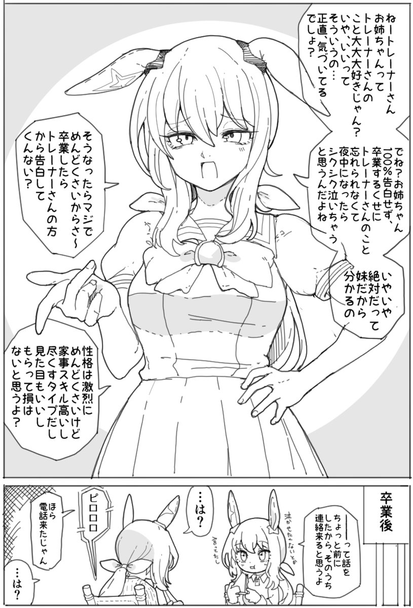アヤベとトレーナーの恋路をサポートするイモベ(アドマイヤベガの妹)