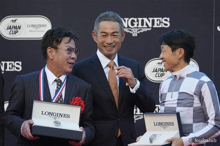 本日のジャパンC、プレゼンターはイチローさん。ものすごく豪華なツーショットです。