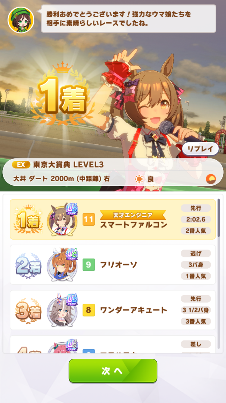 デジたんだと全然届かなかったから新たに逃げリッキー作ったらファル子が出遅れて棚ぼた勝ちしたわ