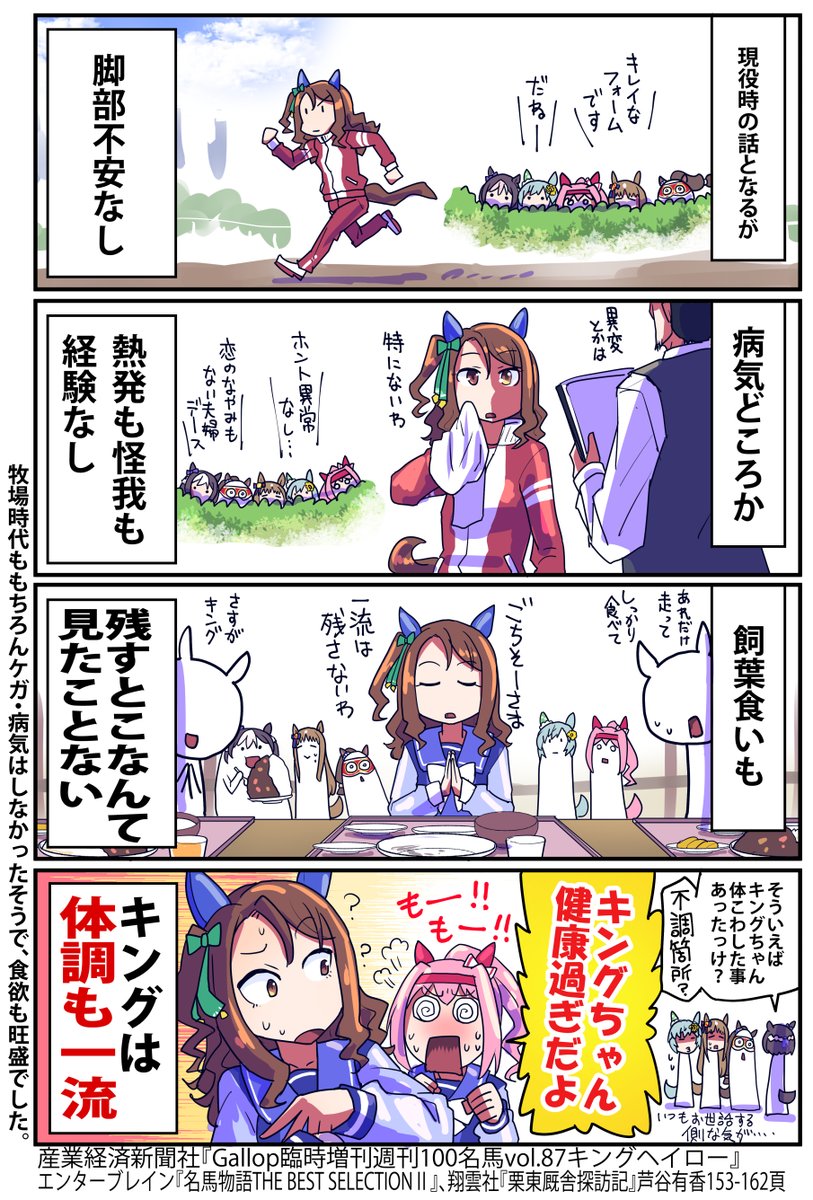 「レース後、疲労も無く飼い葉をペロリ」は当時よく見たキングエピ。