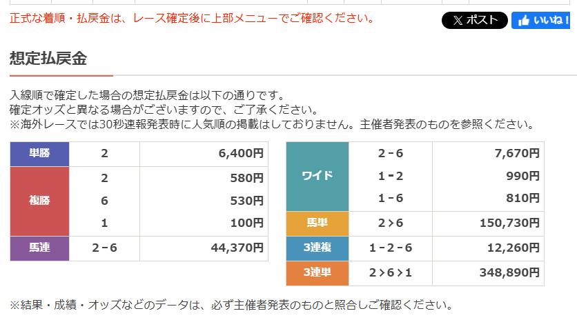 私の馬券は外しましたが