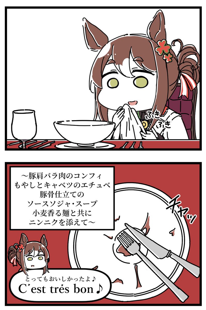 おフランス料理の席では噛みちぎる行為や啜りこむ行為はNGやからね