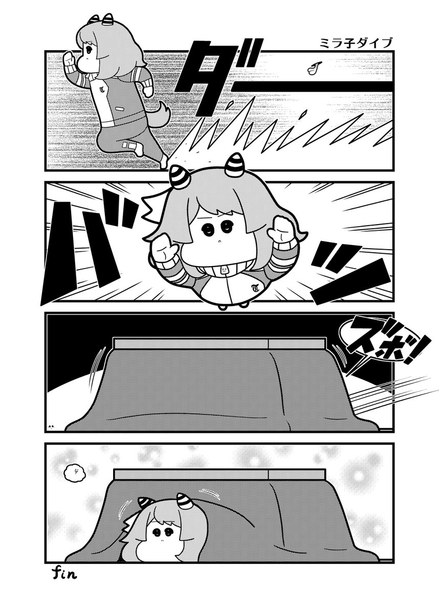 こたつにヘッドスライディング!