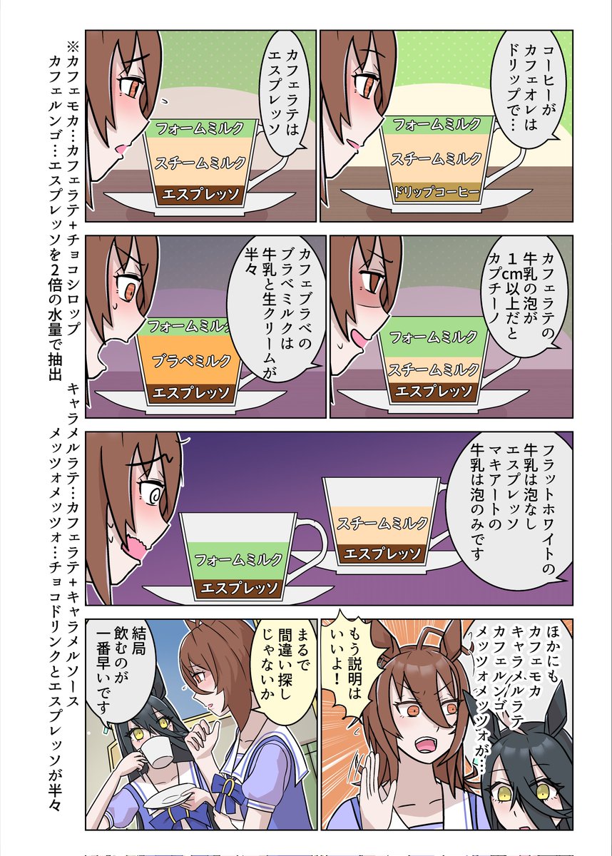 コーヒーとミルクにもこれだけ違いがあるんです……トレーナーさんは…どれが好きですか…?